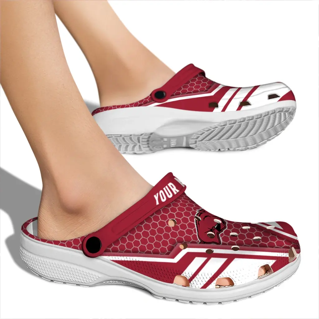 Step into casual comfort with the Arkansas Razorbacks Clog – Customized Hexagon Shield Red, designed for those who live life on the move. Whether you’re headed to game day, tailgates, vacations, or just enjoying everyday wear, these clogs bring a lightweight feel with a versatile look that fits your laid-back lifestyle. Crafted to keep things simple and comfortable, they’re the go-to choice for men and women ready to stay relaxed without compromising on style.