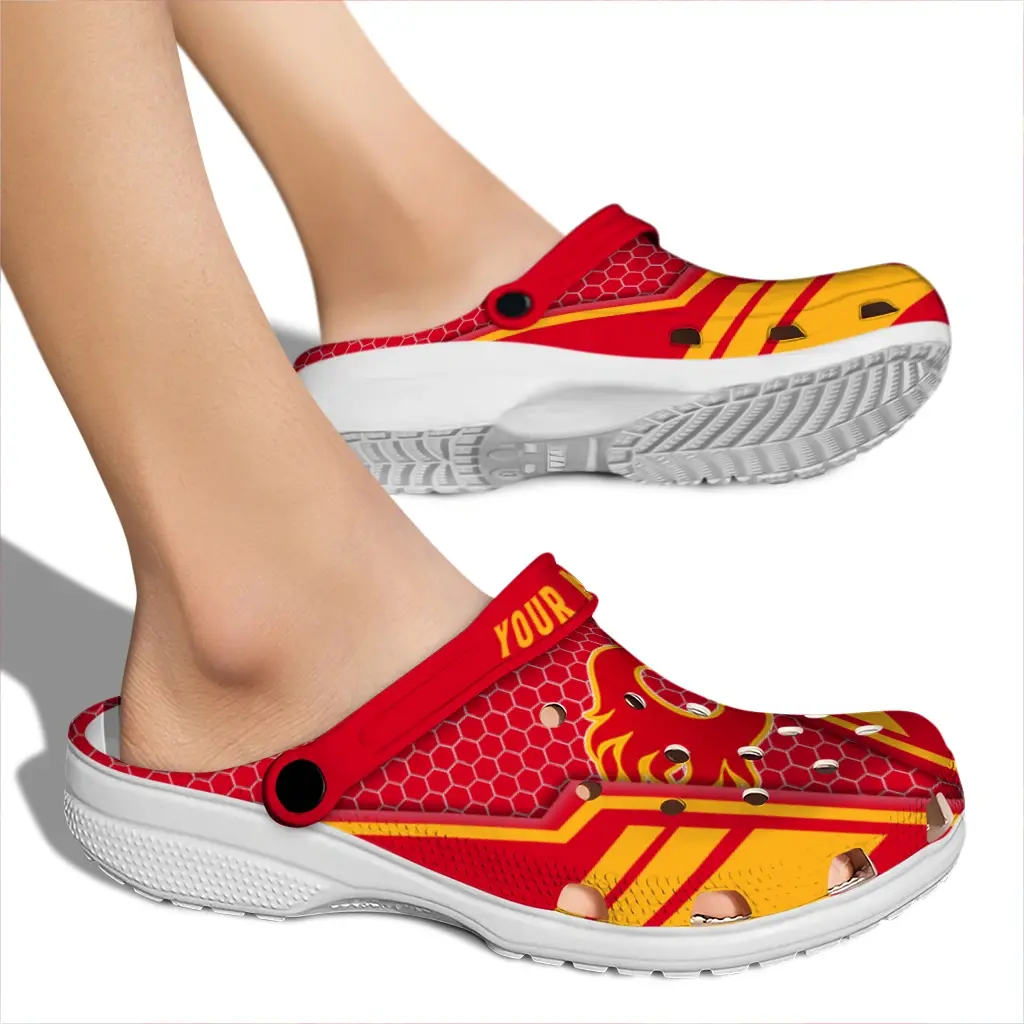 Step into casual comfort with the Calgary Flames Clog – Personalized Hexagon Shield Red, a versatile choice designed for game day, tailgates, vacations, and everyday wear. Crafted for both men and women, this clog blends a classic silhouette with lightweight ease, making it a go-to option whether you’re cheering from the stands or relaxing around town.