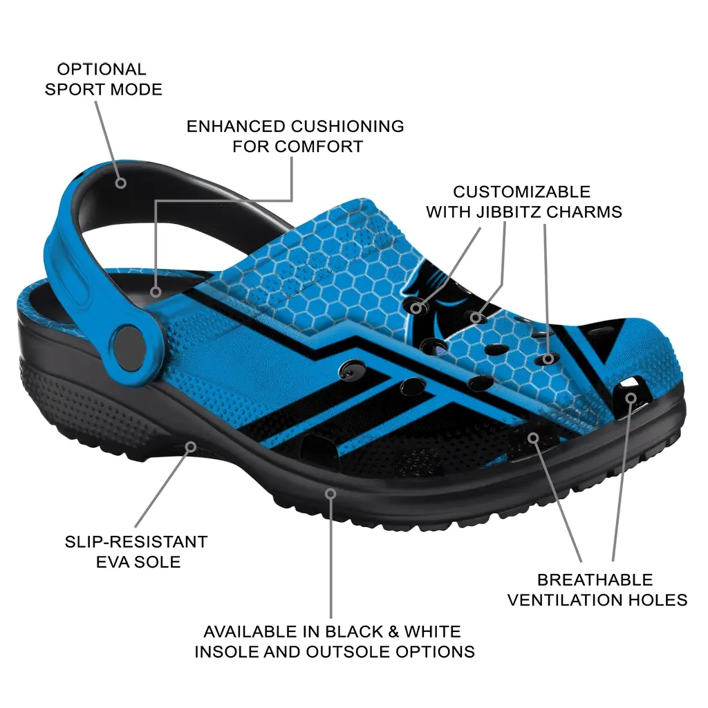 Carolina Panthers Clogs – Custom Hexagon Shield Blue