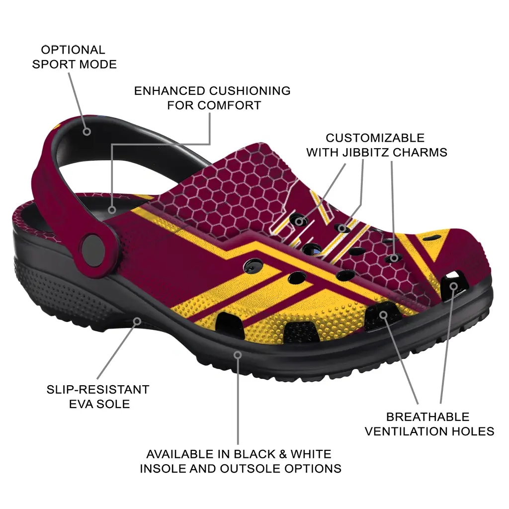 Step into easygoing style with the Central Michigan Chippewas Clog – Personalized Hexagon Shield Maroon, designed for those who enjoy sporty, casual vibes. These clogs offer the perfect blend of comfort and versatility, making them an ideal choice for game day, tailgates, vacations, or just everyday wear. Crafted to keep you relaxed, they effortlessly complement any laid-back outfit while providing dependable comfort throughout your day.