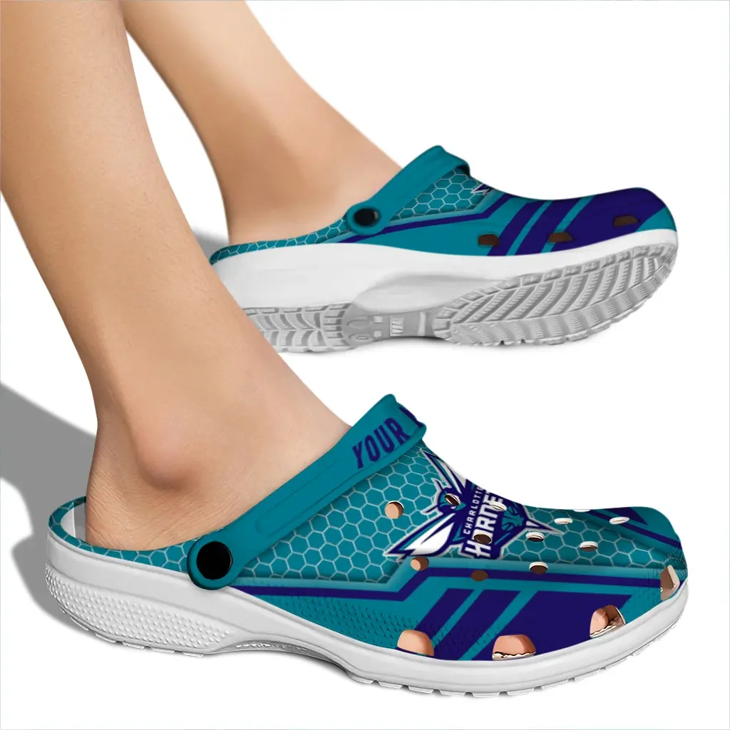 Step into laid-back style with the Charlotte Hornets Clog – Personalized Hexagon Shield Teal, designed to keep you comfortable whether you’re headed to game day, tailgates, vacations, or just casual daily wear. Crafted from lightweight materials, these clogs bring versatility to your footwear collection, easily pairing with your favorite casual and sporty looks.