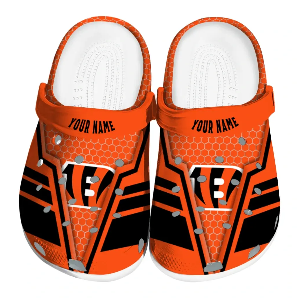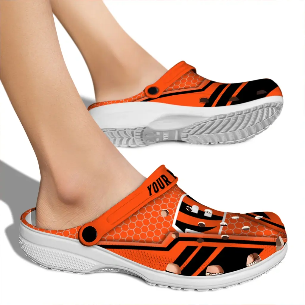 Step into laid-back style with the Cincinnati Bengals Clog – Personalized Hexagon Shield Orange, crafted for fans and casual wearers alike. These clogs offer a perfect blend of comfort and versatility, making them ideal for game day, tailgates, vacations, or everyday activities. Their easygoing design pairs seamlessly with your favorite casual outfits while providing lightweight support throughout the day.