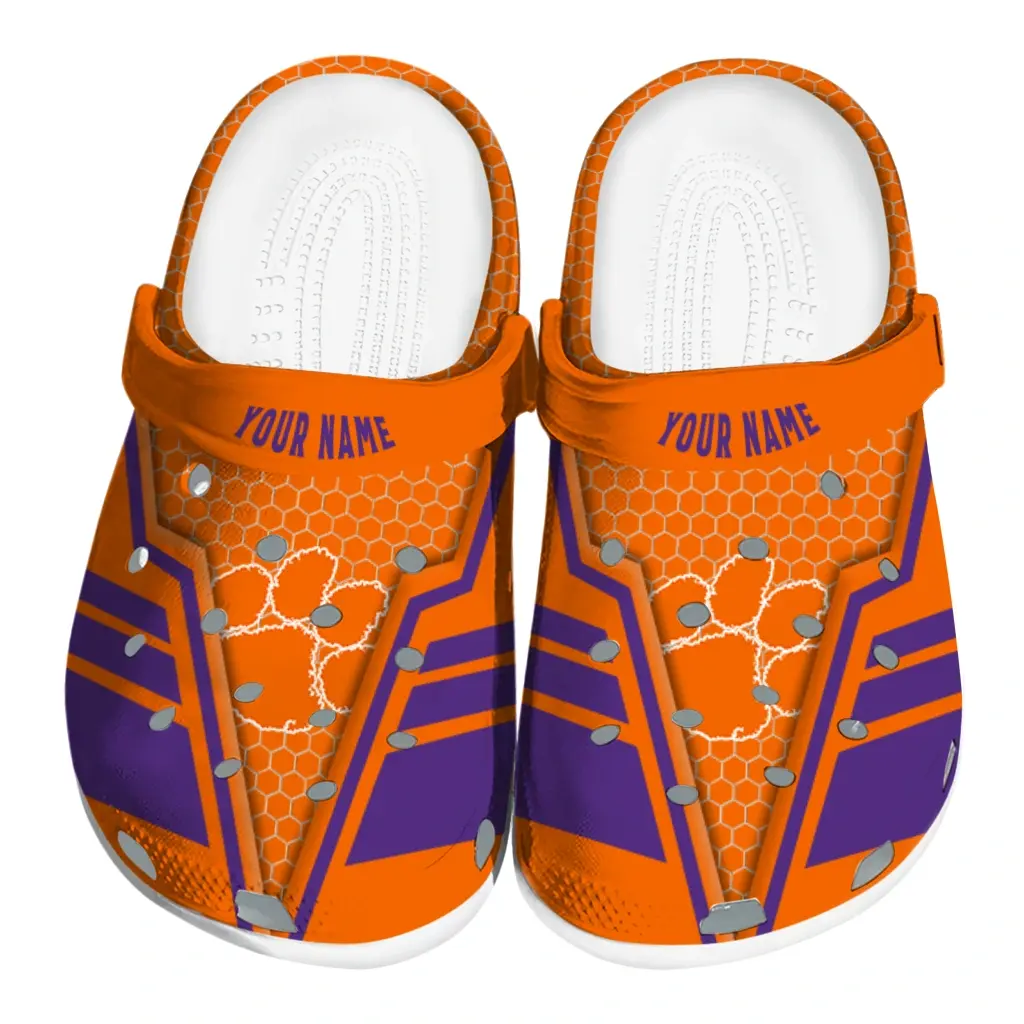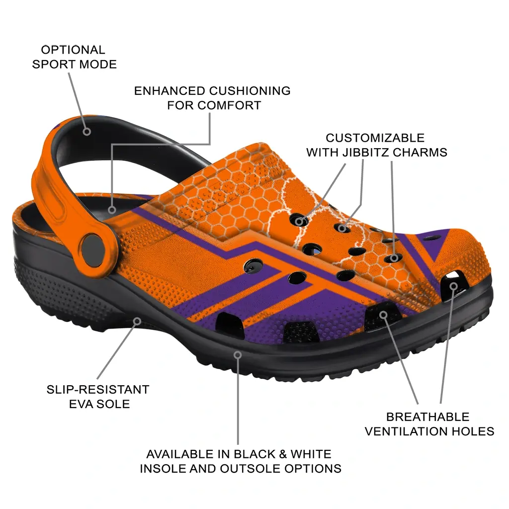 Clemson Tigers Clogs – Custom Hexagon Shield Orange