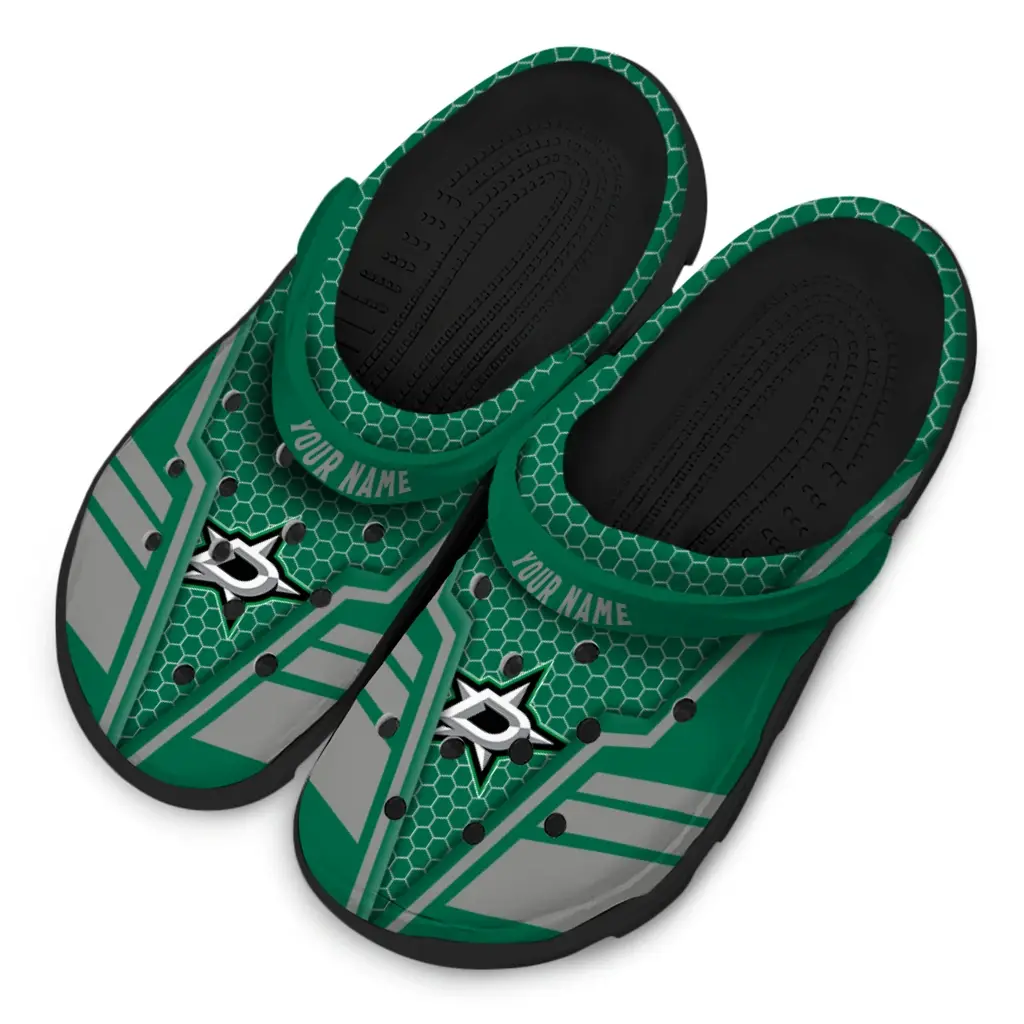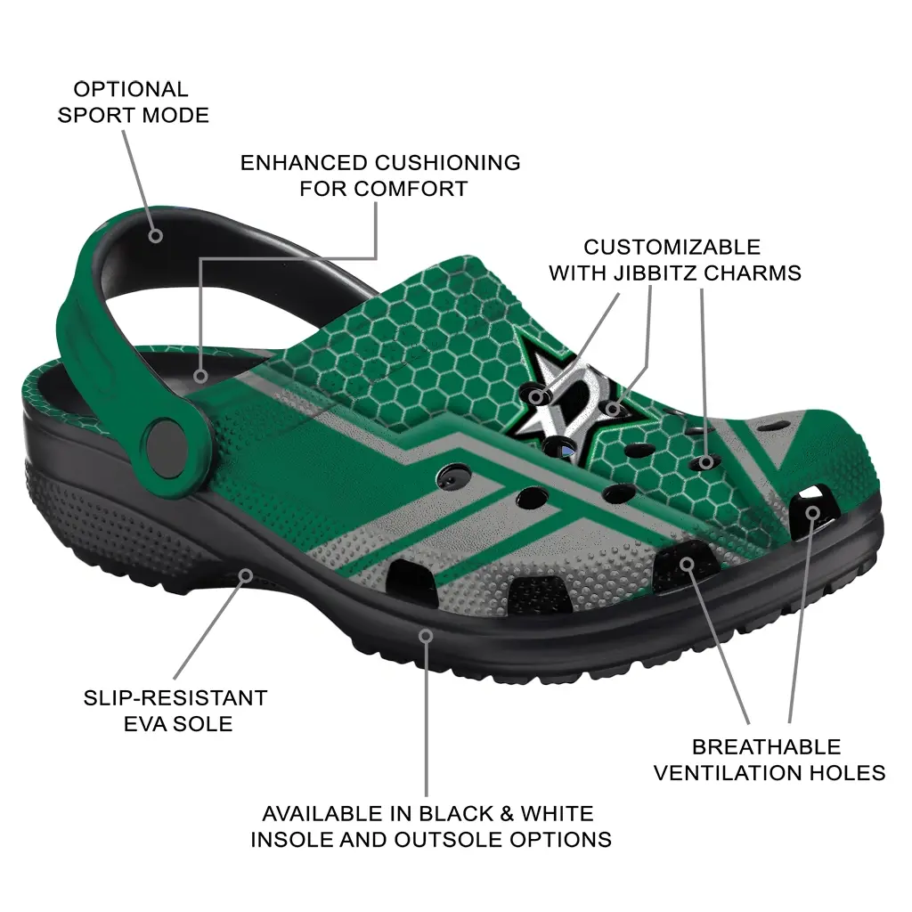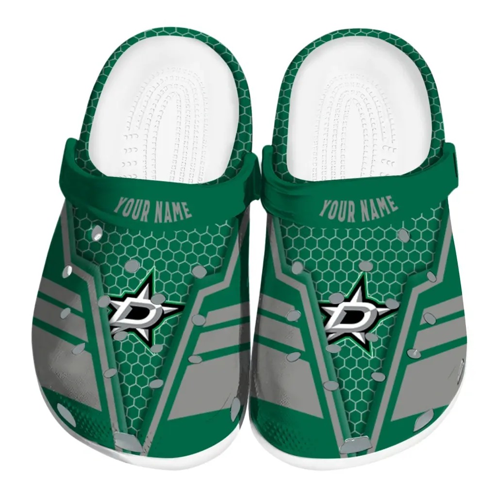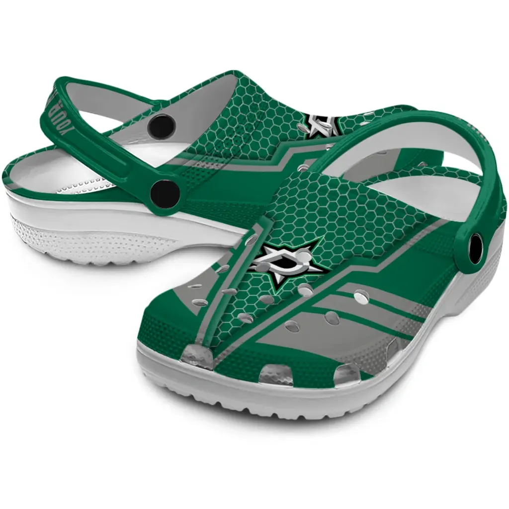 Dallas Stars Clogs – Customized Hexagon Shield Green