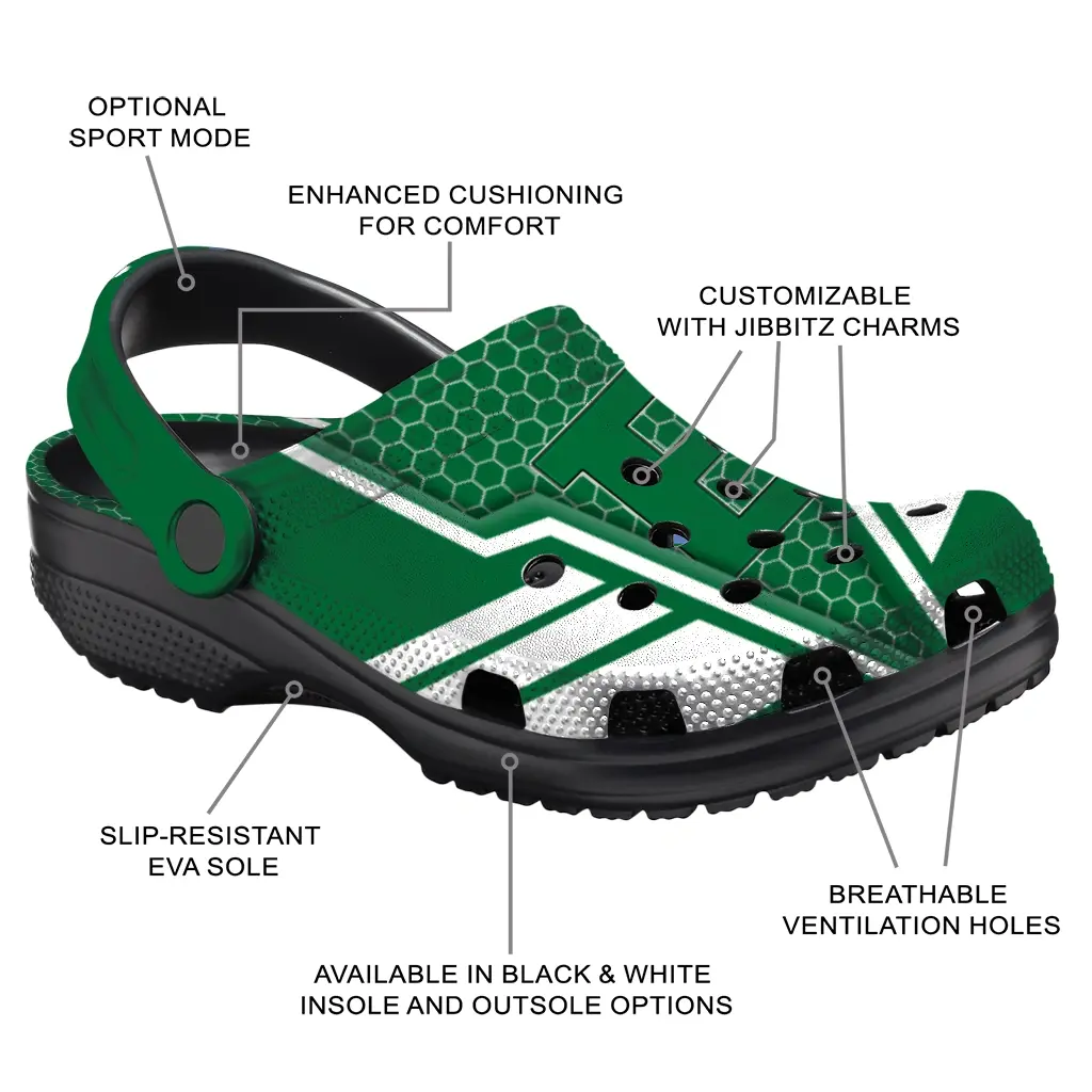 Step into casual style with the Eastern Michigan Eagles Clog – Custom Hexagon Shield Green, designed for laid-back days and active lifestyles. These clogs provide lightweight comfort and versatility, making them perfect for game day, tailgates, vacations, or simply everyday wear. Whether you’re out with friends or relaxing at home, their classic design and easy feel keep you moving with confidence.