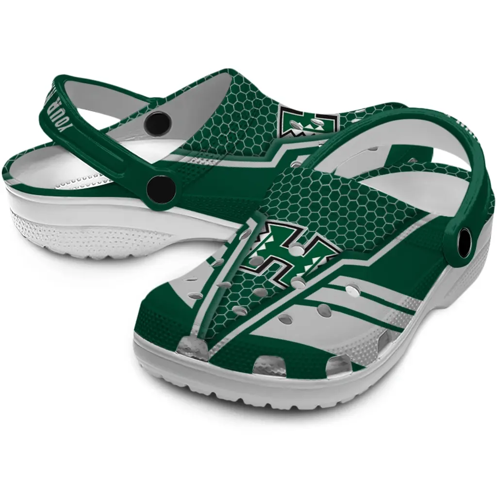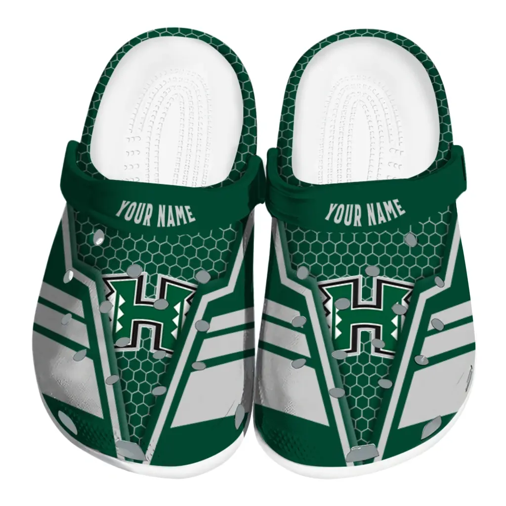 Hawaii Rainbow Warriors Clogs – Personalized Hexagon Shield Green