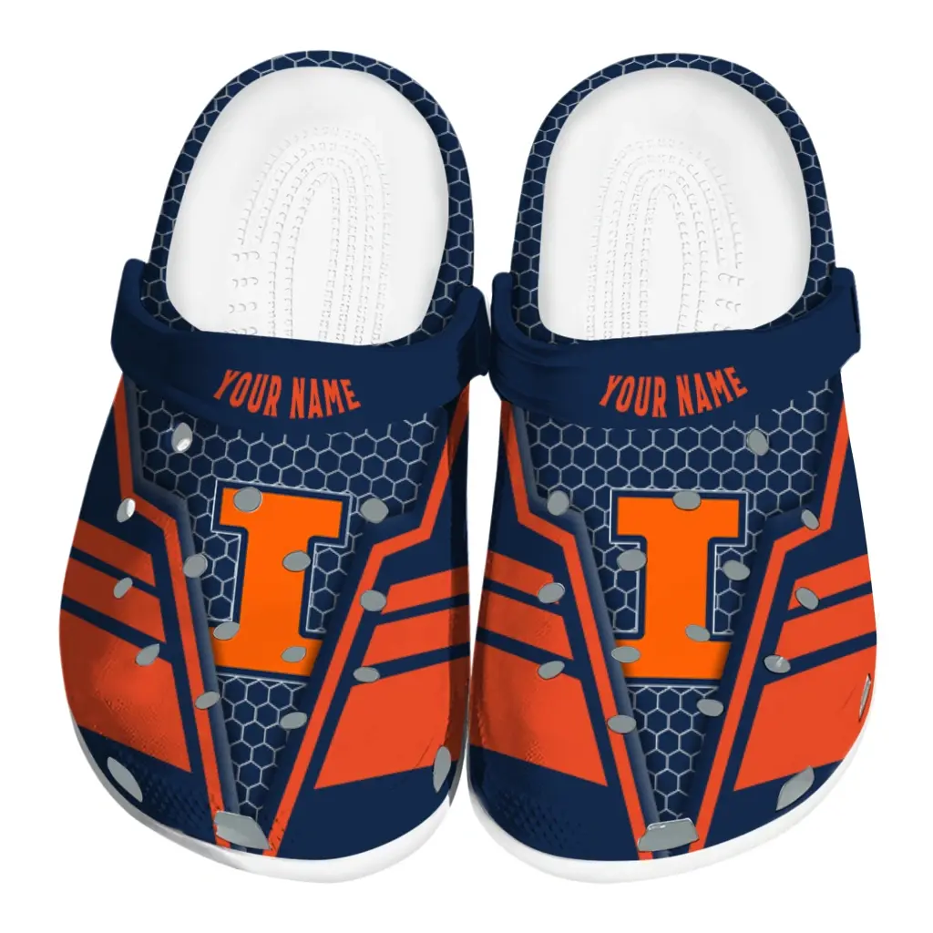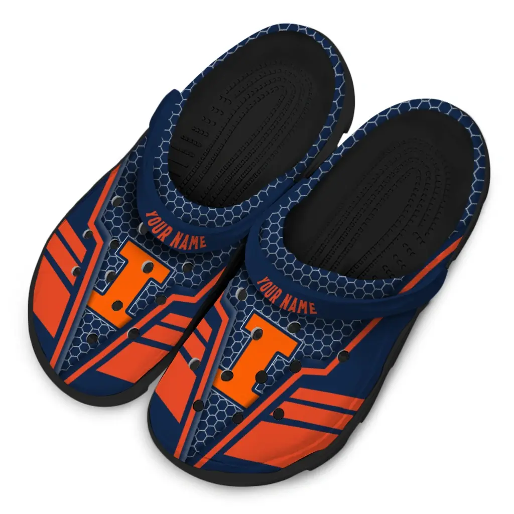 Illinois Fighting Illini Clogs – Personalized Hexagon Shield Blue