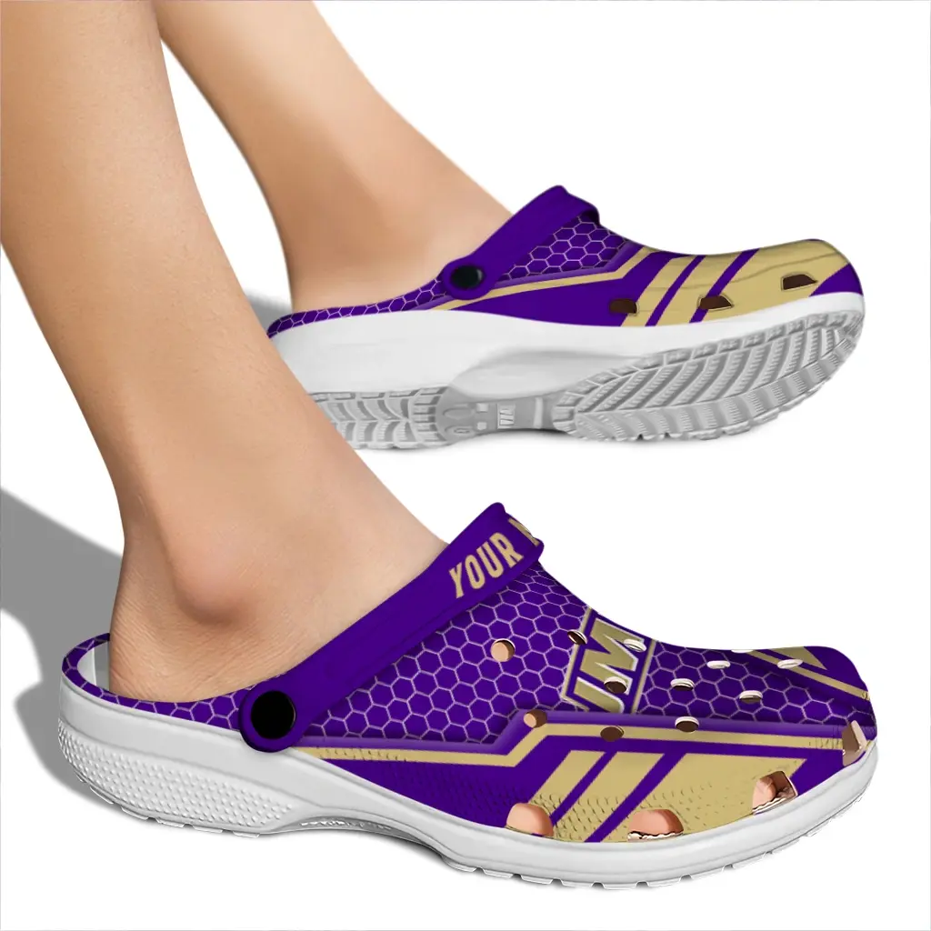 Step into effortless style with the James Madison Dukes Clog – Custom Hexagon Shield Purple, designed to keep up with your game day, tailgates, vacations, and laid-back days. Crafted for comfort and versatility, these clogs blend a sporty vibe with casual ease, making them a go-to choice whether you’re lounging at home or out with friends. Their lightweight feel and adaptable design fit seamlessly into any active lifestyle.