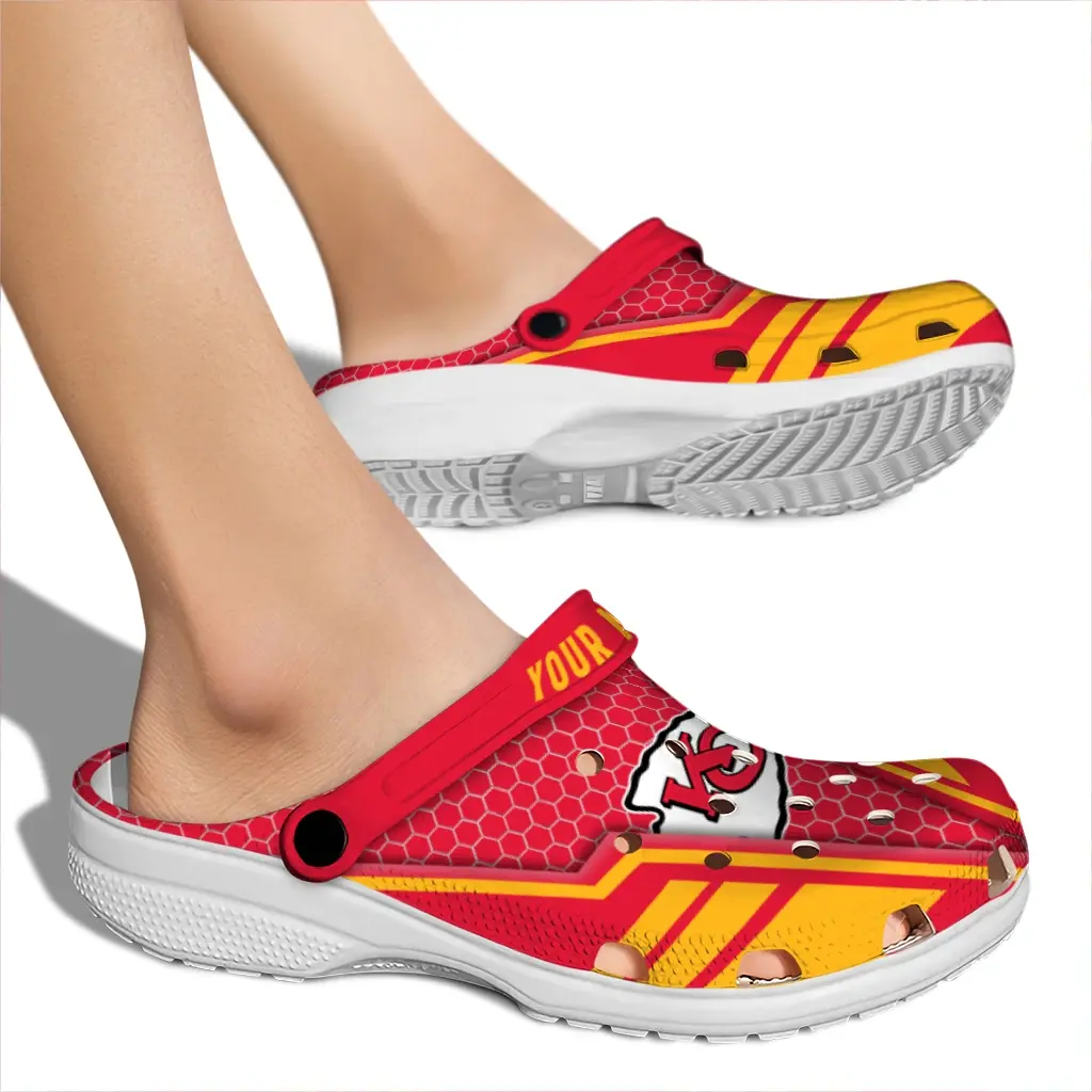 Kansas City Chiefs Clogs – Personalized Hexagon Shield Red