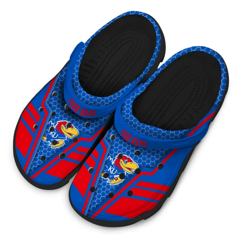 Kansas Jayhawks Clogs – Customized Hexagon Shield Blue