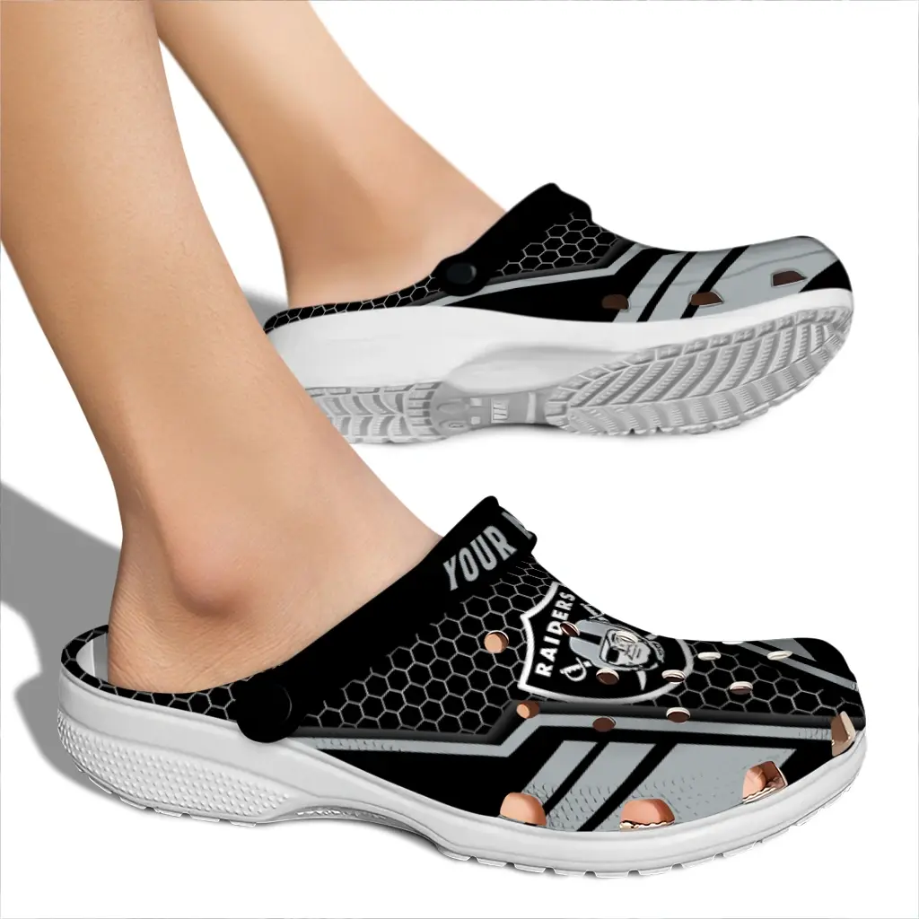 Las Vegas Raiders Clogs – Custom Hexagon Shield Black