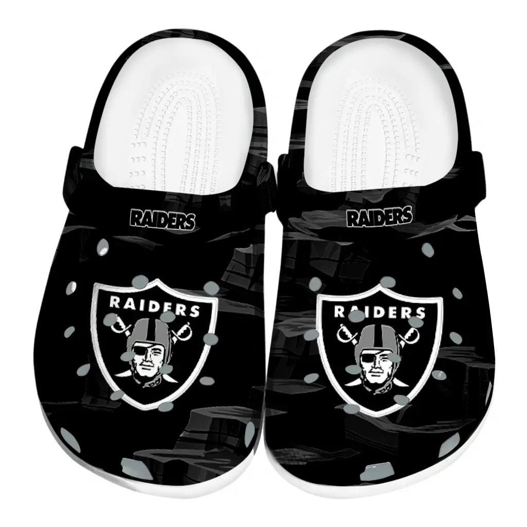 Thoroughly crafted with high-quality material, our Customized Las Vegas Raiders Splash Motif Background Clog is a perfect blend of comfort and style for your wardrobe