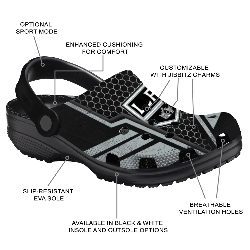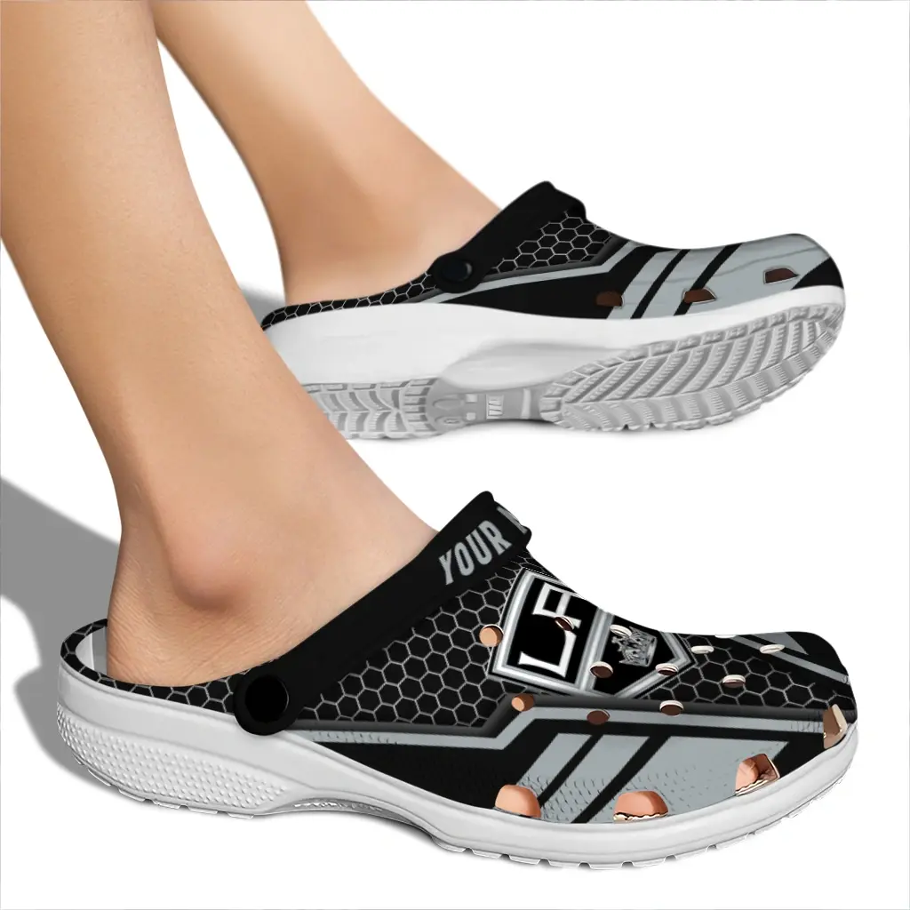 The Los Angeles Kings Clog – Personalized Hexagon Shield Black brings together casual style and easygoing comfort. Designed with your active lifestyle in mind, these clogs are perfect for game day, tailgates, vacations, or just kicking back at home. Lightweight and durable, they make slipping into something cozy effortless whether you’re out and about or relaxing indoors.