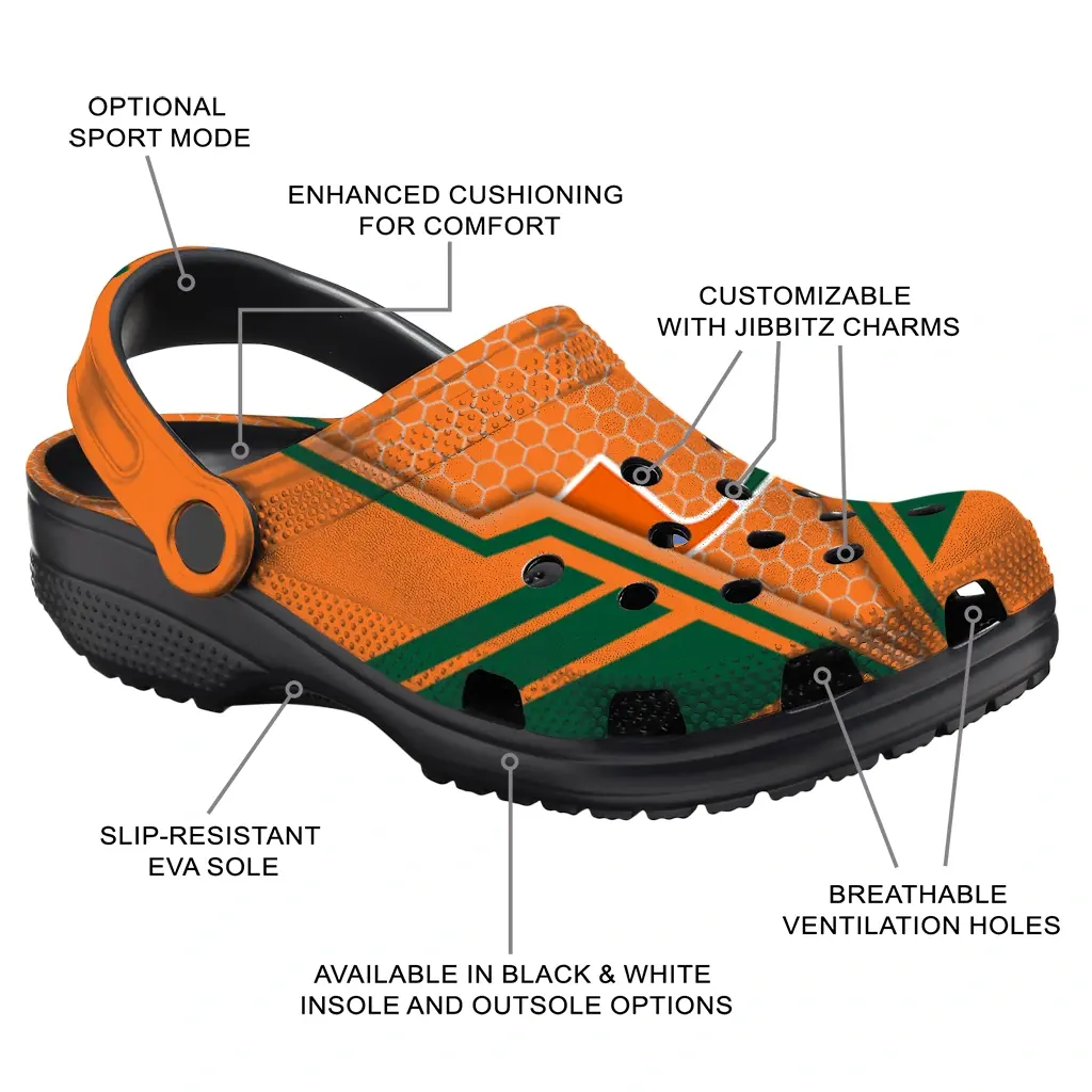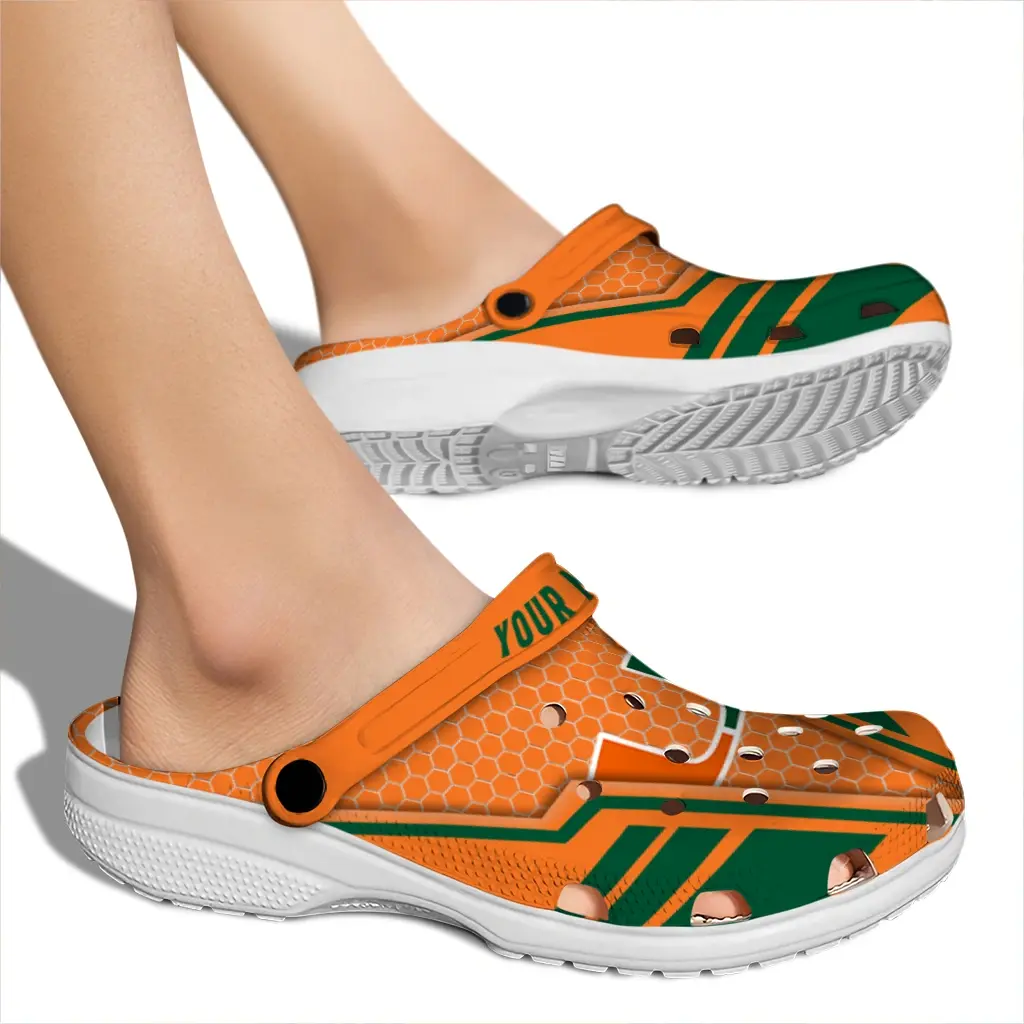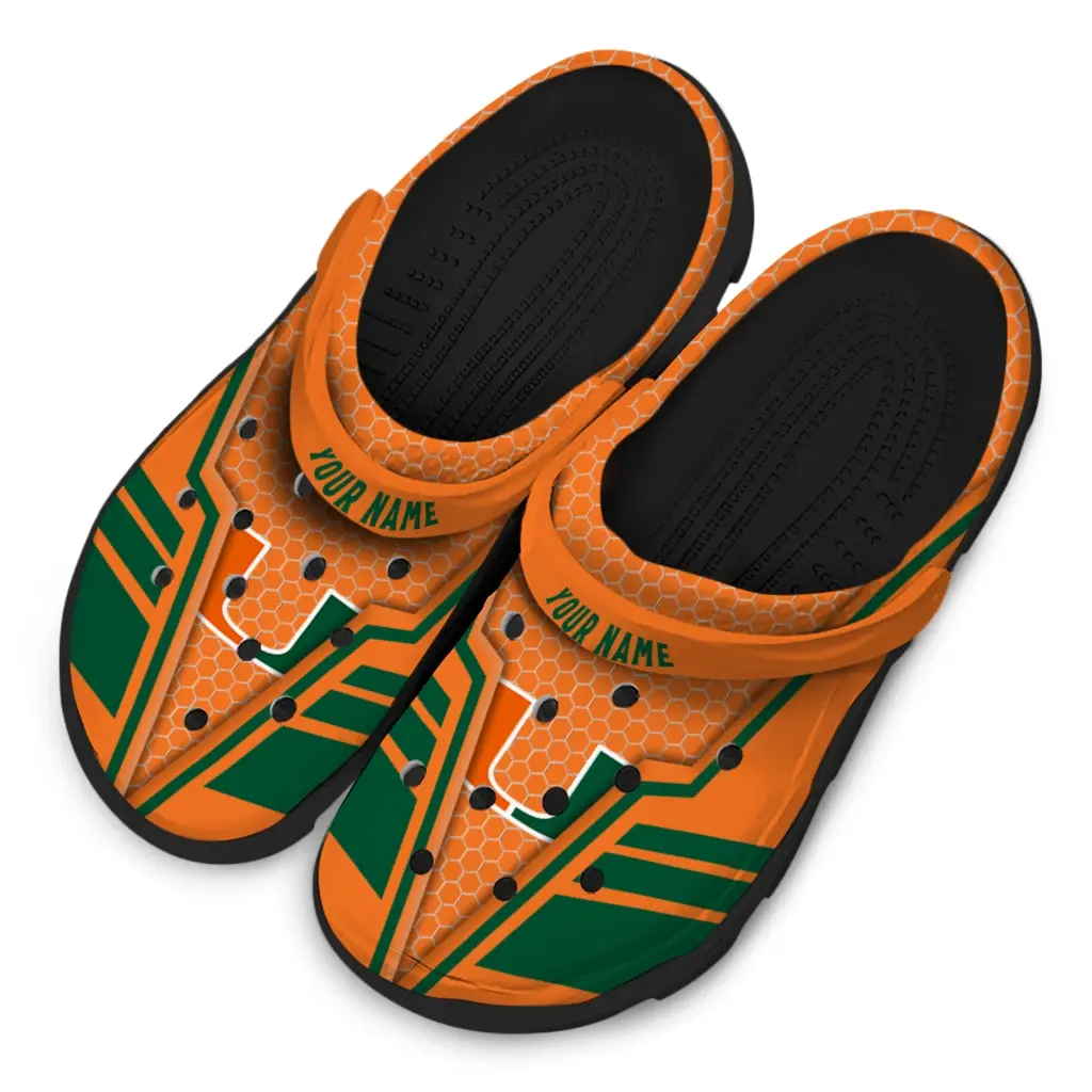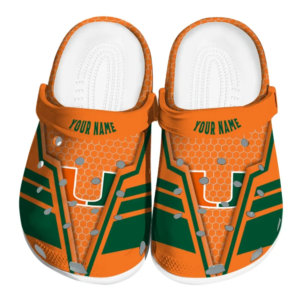 Miami Hurricanes Clogs – Custom Hexagon Shield Orange