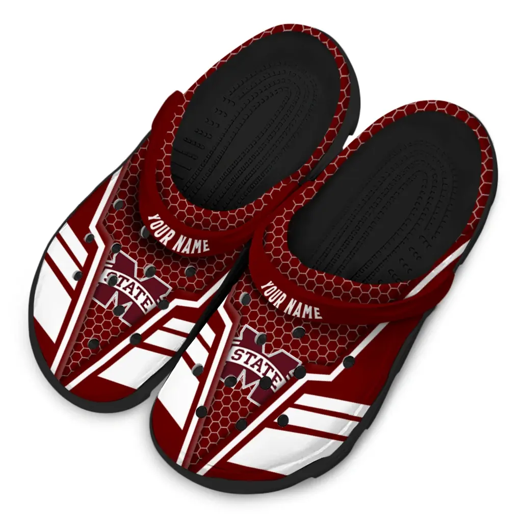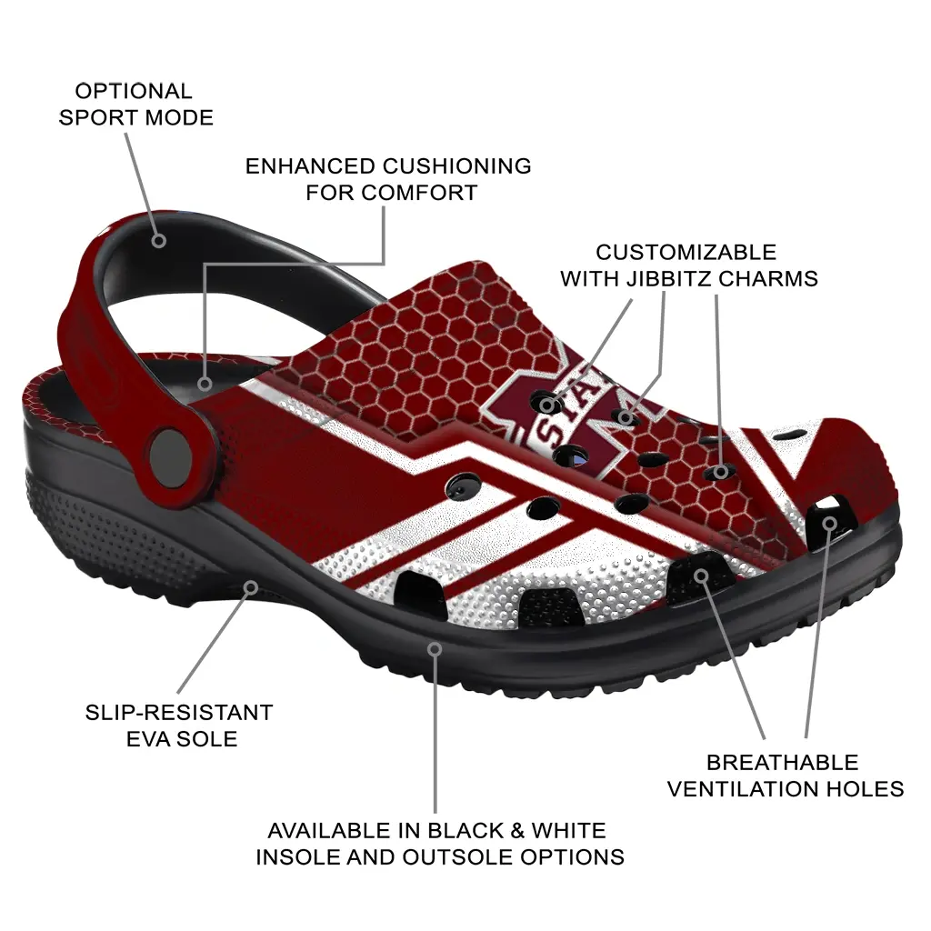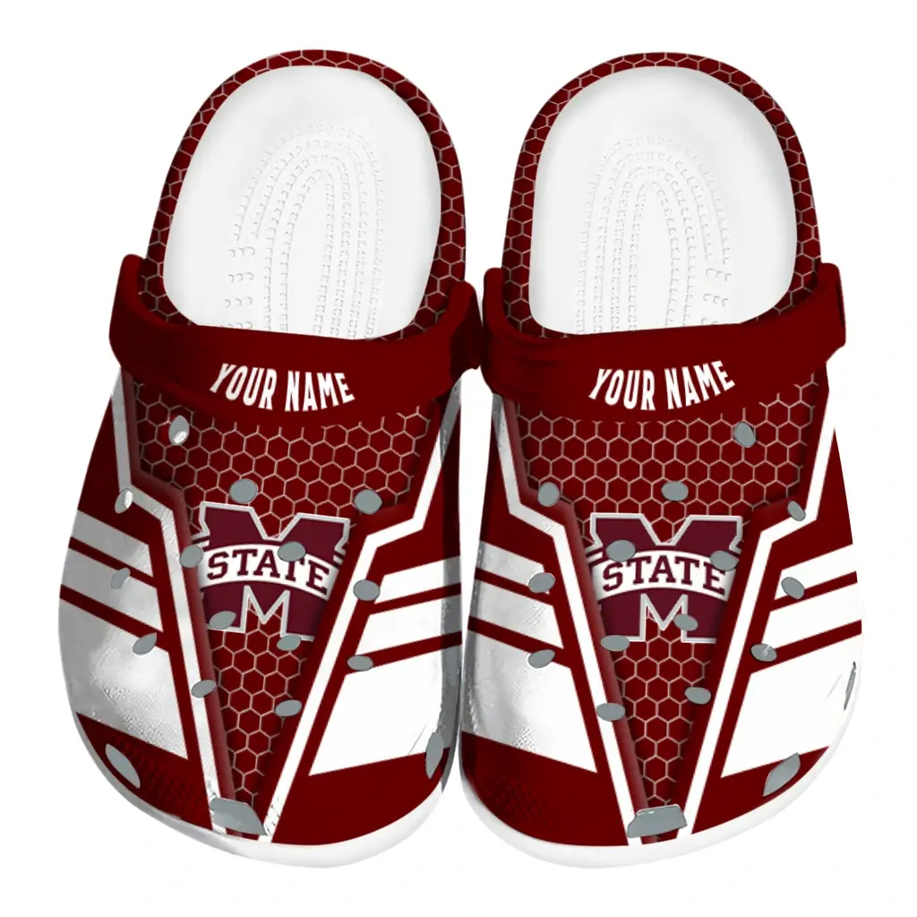 Mississippi State Bulldogs Clogs – Custom Hexagon Shield Maroon