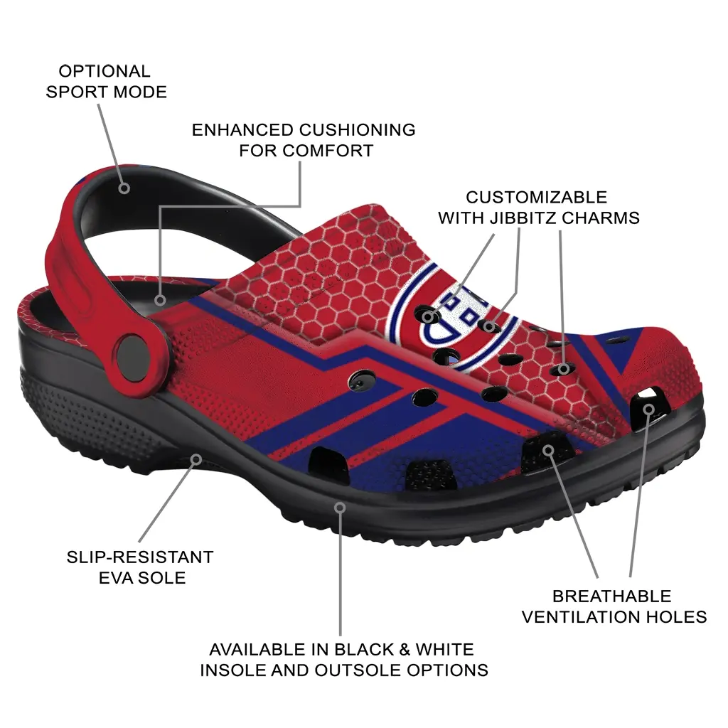 Step into comfort with the Montreal Canadiens Clog – Customized Hexagon Shield Red, a versatile and lightweight option perfect for game day, tailgates, vacations, or just hanging out. Crafted from 100% EVA, these clogs blend casual style with all-day wearability, making them an easy choice for both men and women looking to add some sporty flair to their everyday wardrobe.