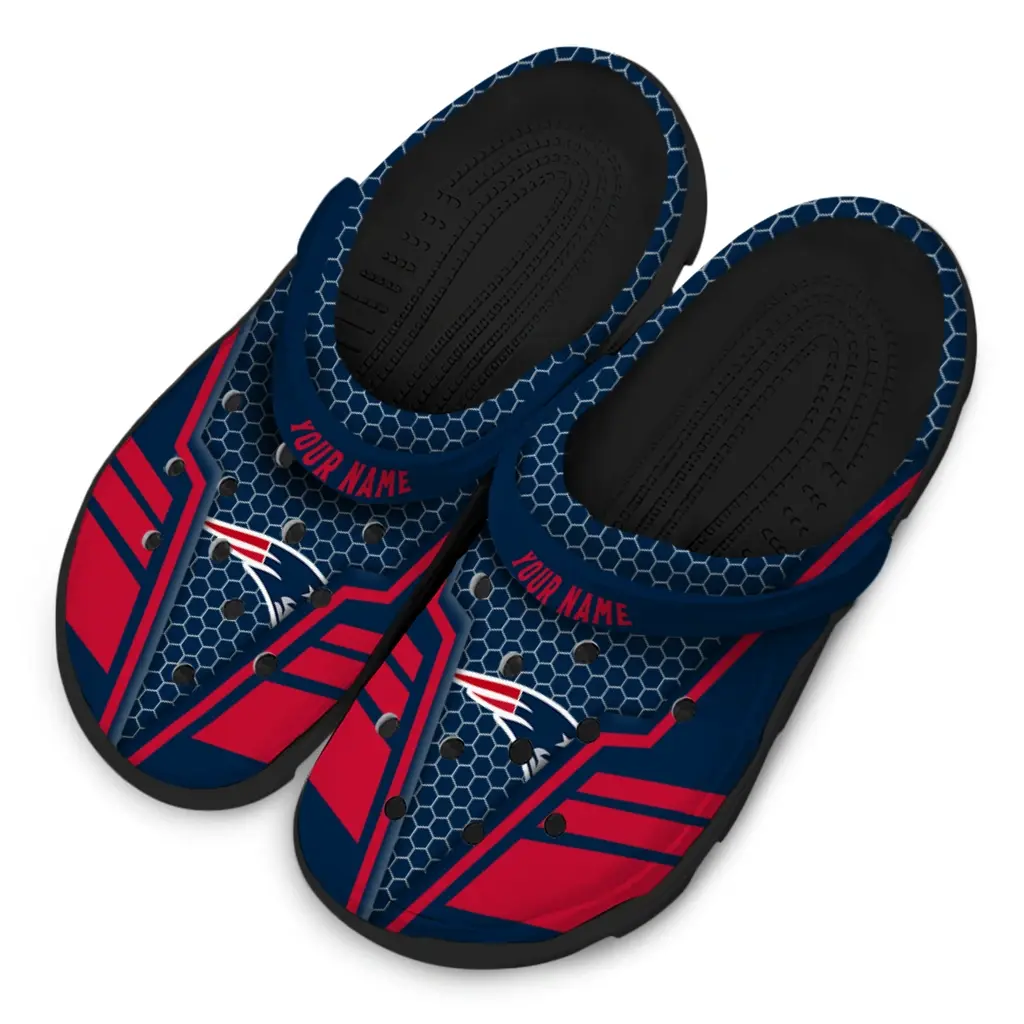 New England Patriots Clogs – Personalized Hexagon Shield Blue