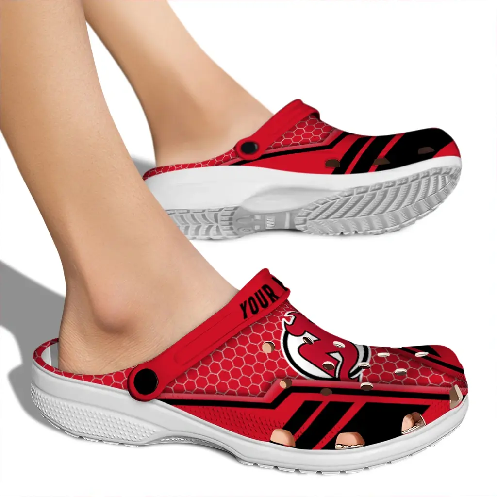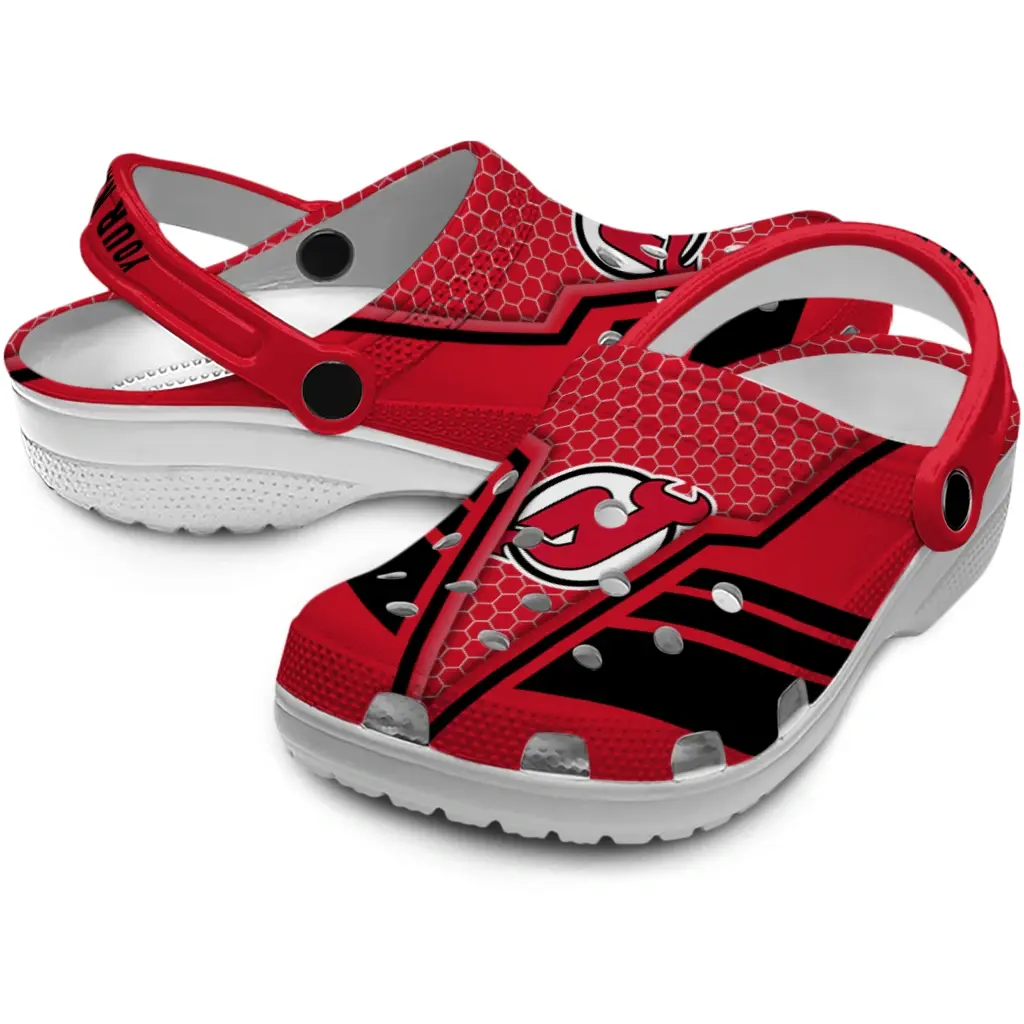 Step into comfort and style with the New Jersey Devils Clog – Custom Hexagon Shield Red, designed to keep up with your game day, tailgate, vacation, or everyday lifestyle. Made from lightweight 100% EVA, these clogs offer versatile wear that’s both easy and relaxed. Whether you’re cheering on your team or out running errands, their casual design fits effortlessly into any setting.