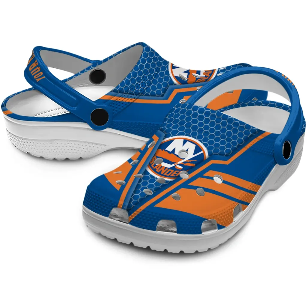 The New York Islanders Clog – Customized Hexagon Shield Blue offers a laid-back vibe perfect for game day, tailgates, vacations, or just hanging out. Crafted from lightweight 100% EVA material, these clogs provide all-day comfort without sacrificing style. Whether you’re stepping out for an adventure or relaxing at home, their versatile design fits effortlessly into your casual lifestyle.