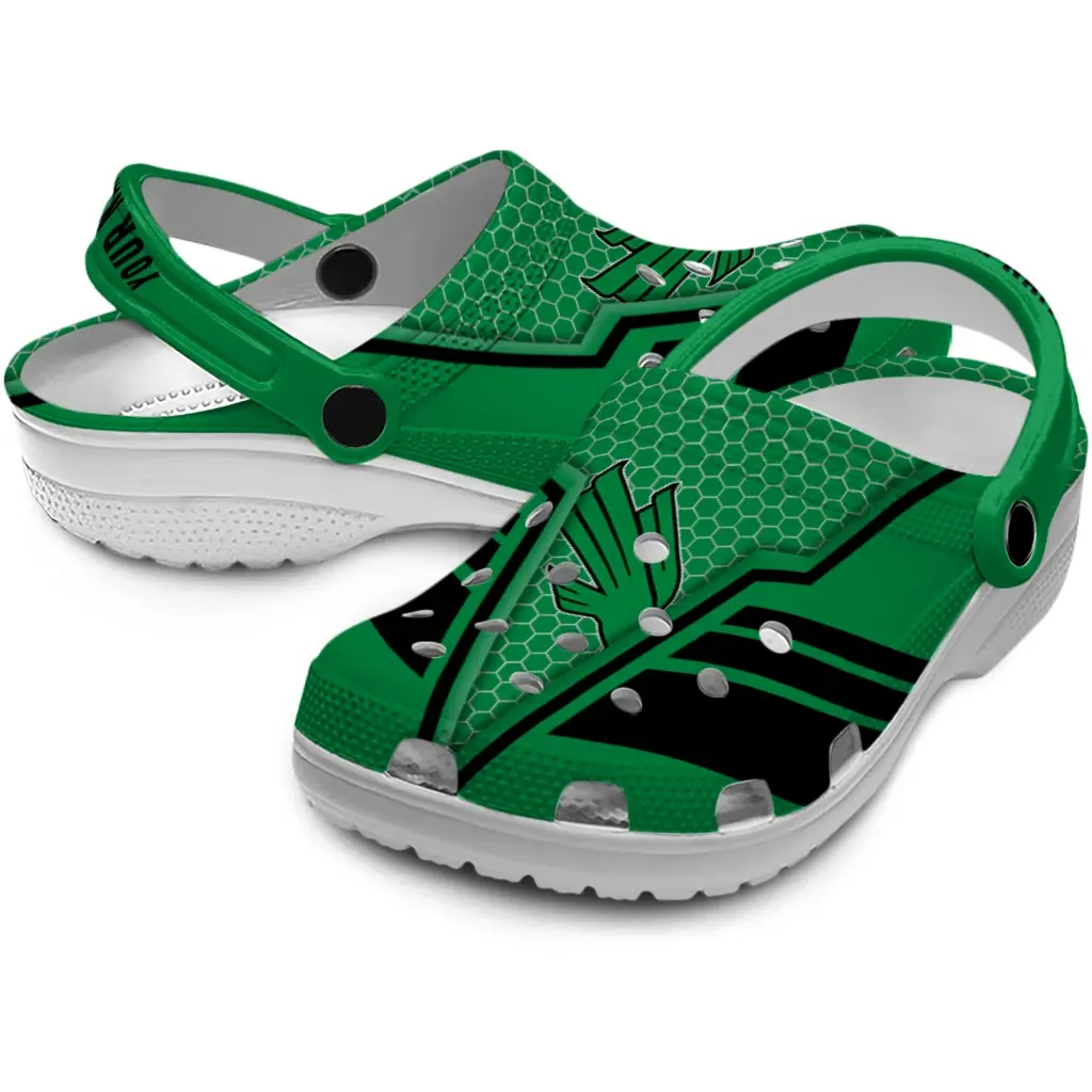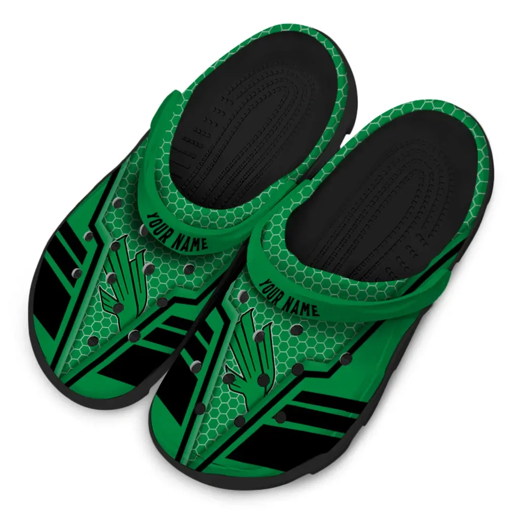 North Texas Mean Green Clogs – Customized Hexagon Shield Green