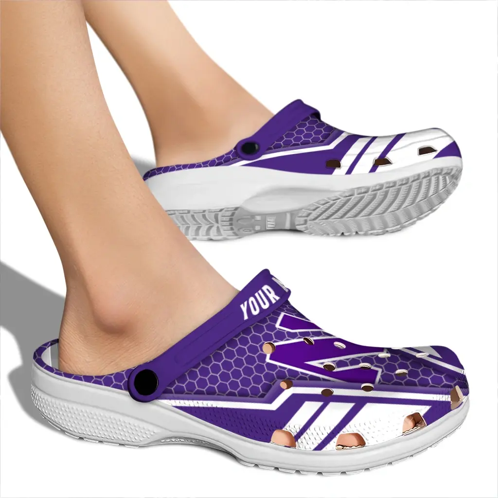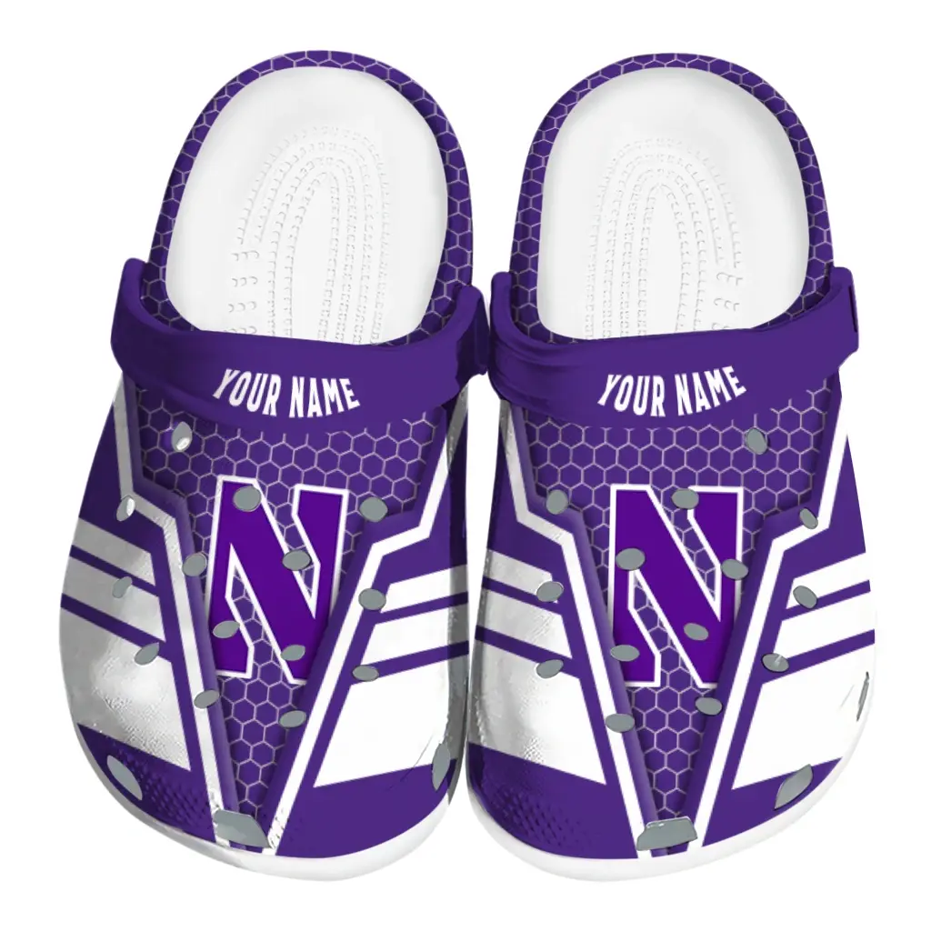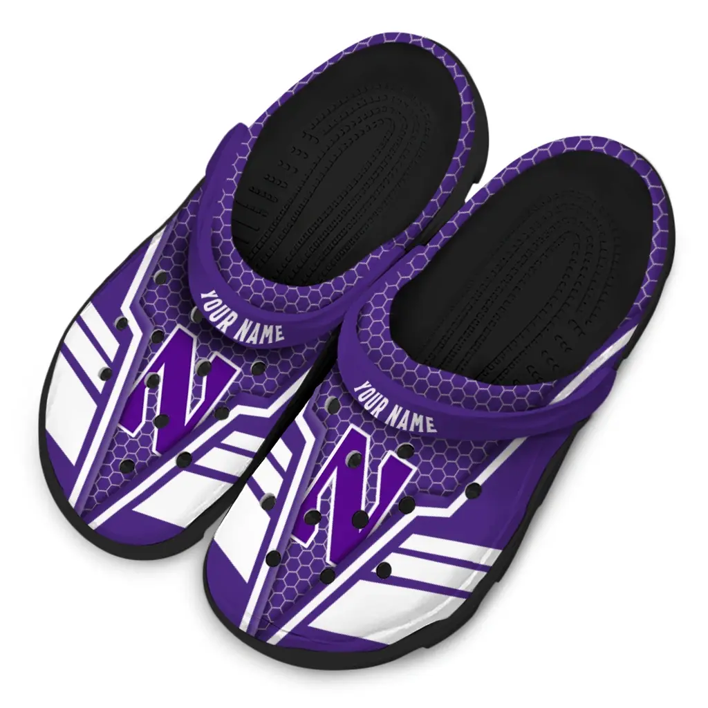 Northwestern Wildcats Clogs – Custom Hexagon Shield Purple