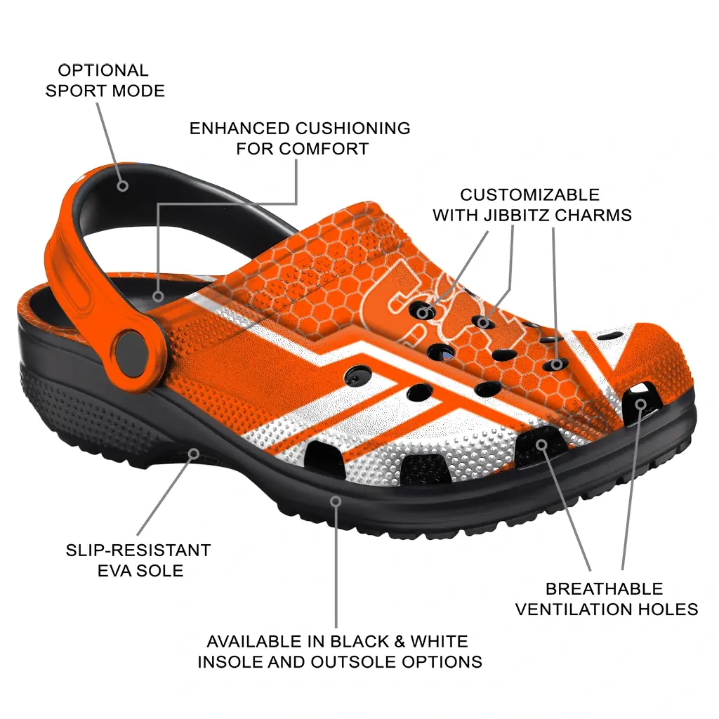 Sam Houston Bearkats Clogs – Personalized Hexagon Shield Orange