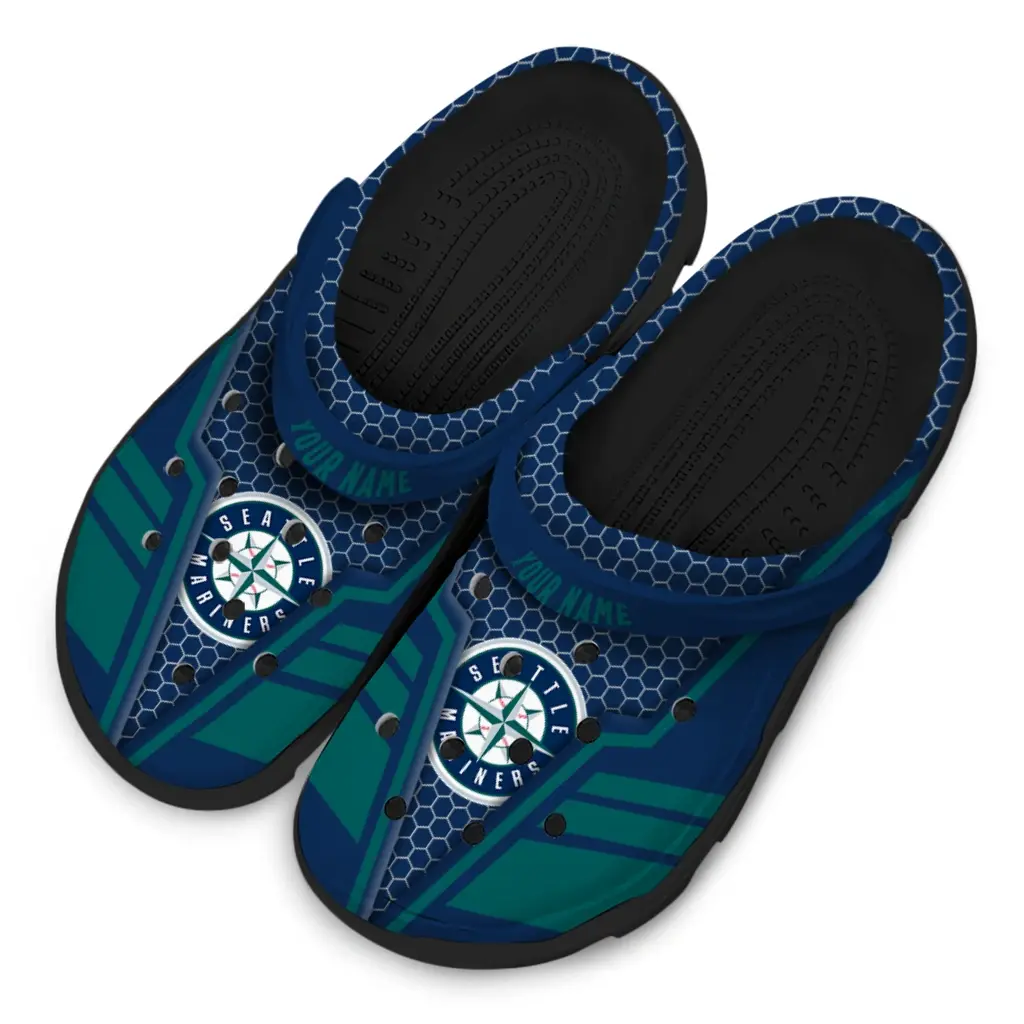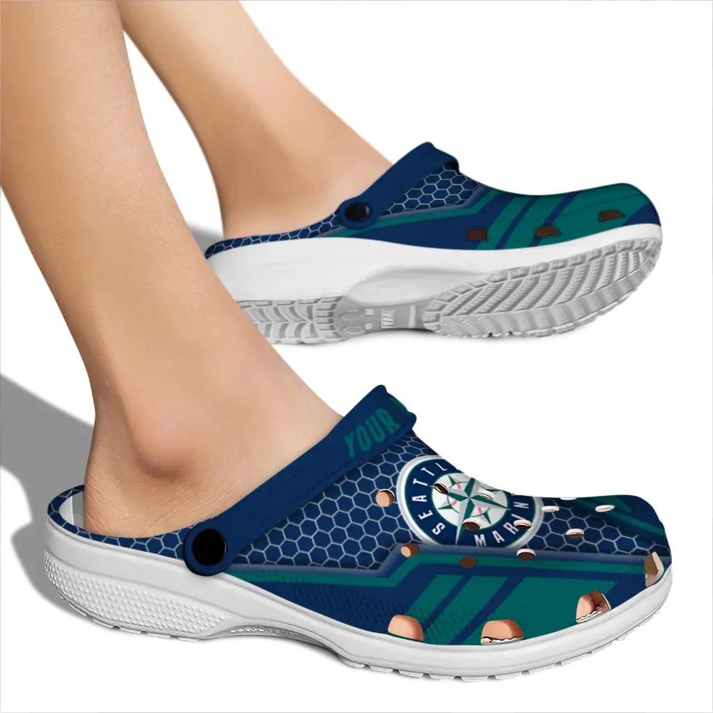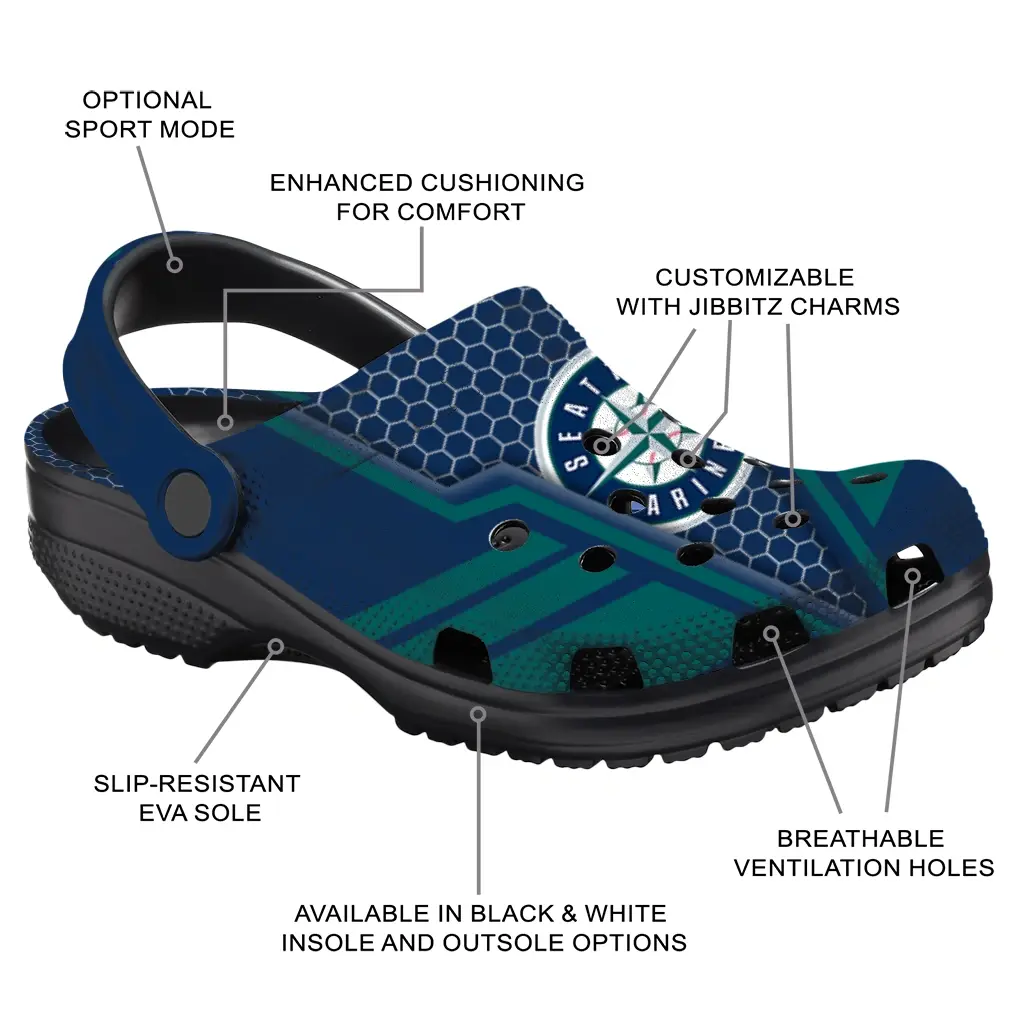 The Seattle Mariners Clog – Customized Hexagon Shield Navy Blue offers a perfect blend of style and ease, ideal for game day, tailgates, vacations, or simply hanging out. Crafted for comfort and versatility, this clog fits seamlessly into an active lifestyle, providing a casual look without sacrificing relaxed wearability. Whether you’re cheering in the stands or enjoying everyday activities, these clogs keep things effortless and comfortable.