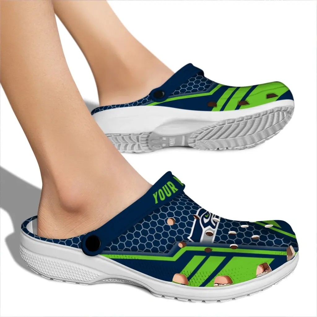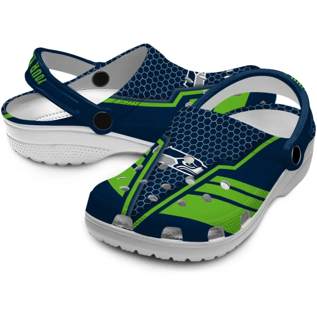 Step into casual comfort with the Seattle Seahawks Clog – Custom Hexagon Shield Blue, a versatile choice designed for game day, tailgates, vacations, and everyday wear. Crafted for both men and women, this clog blends lightweight ease with a sporty vibe that fits seamlessly into your active lifestyle.