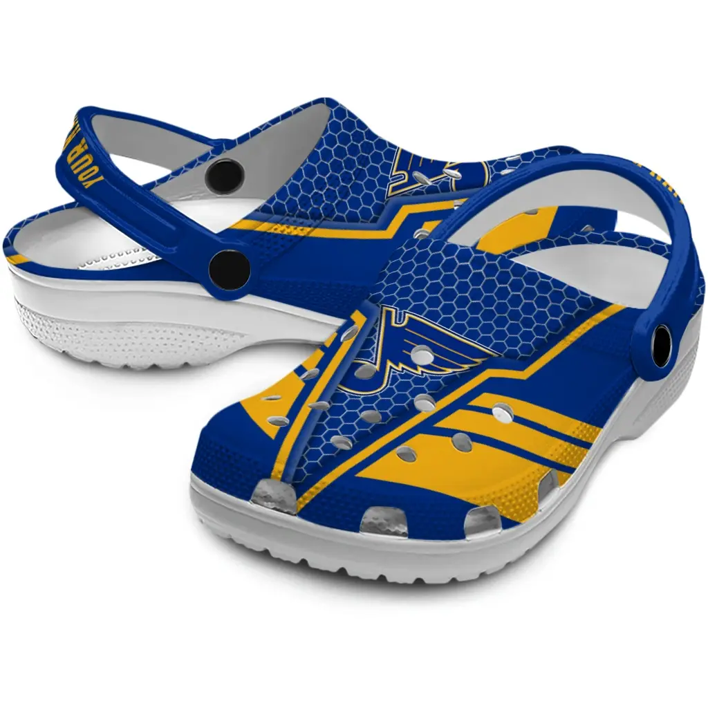 St. Louis Blues Clogs – Personalized Hexagon Shield Blue