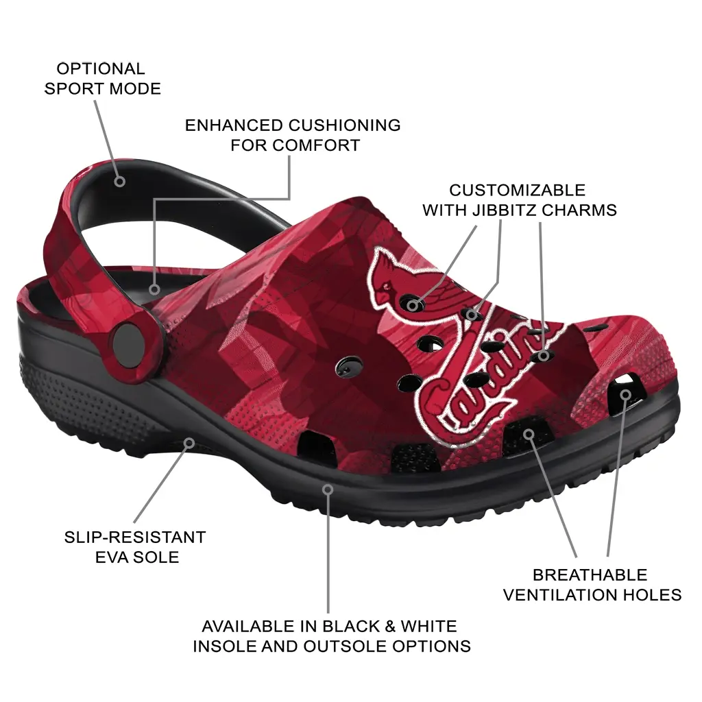 Thoroughly crafted with high-quality material, our St. Louis Cardinals Geometric Background Clog is a perfect blend of comfort and style for your wardrobe