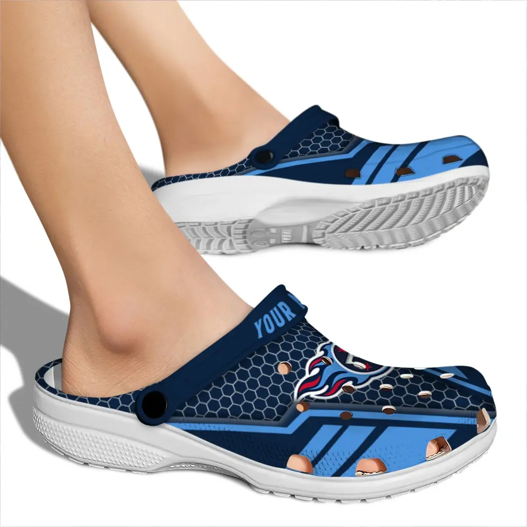 Step into comfort and style with the Tennessee Titans Clog – Personalized Hexagon Shield Navy. Designed for fans who want a versatile, casual shoe, these clogs bring together ease and laid-back vibes perfect for game day, tailgates, vacations, or everyday wear. Built with lightweight 100% EVA, they won’t weigh you down whether you’re cheering from the stands or relaxing around town.