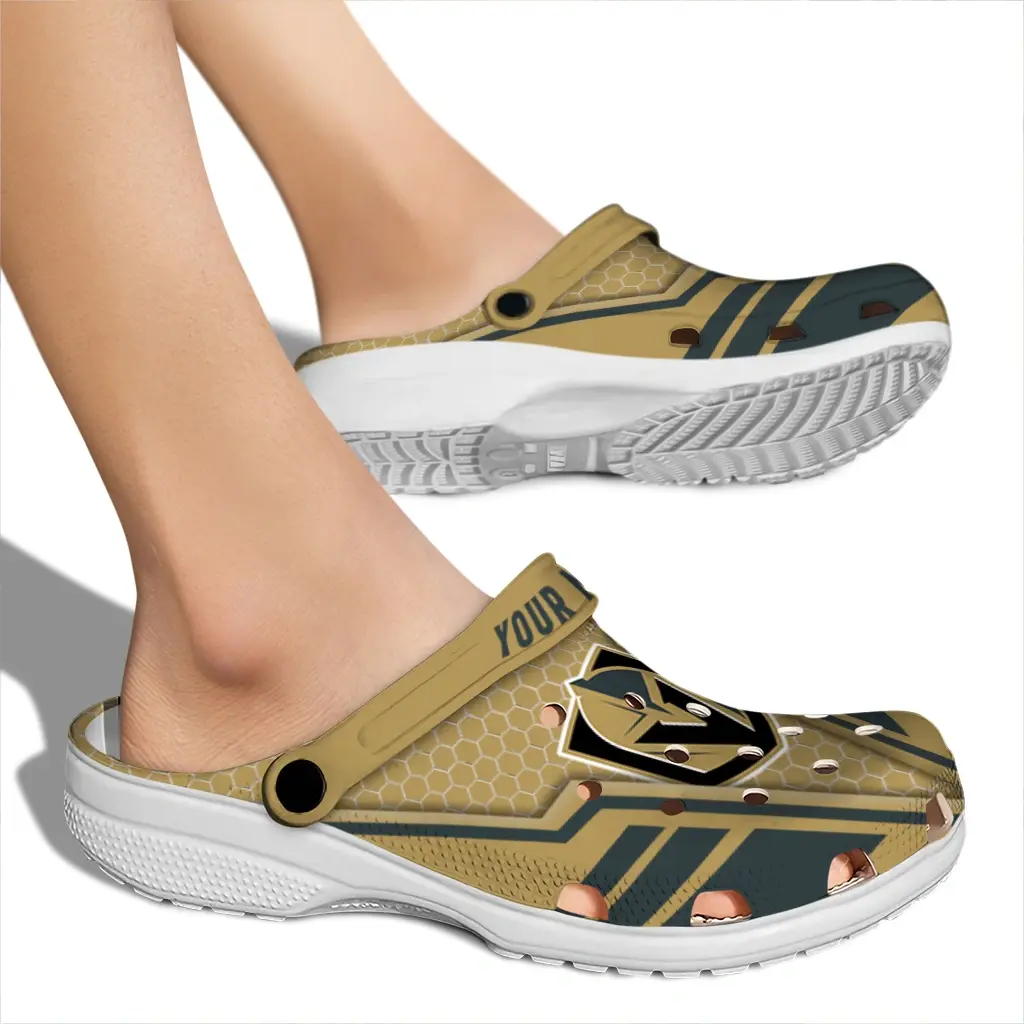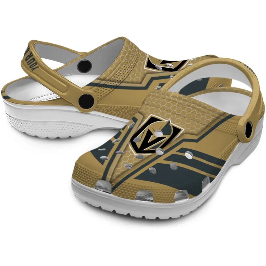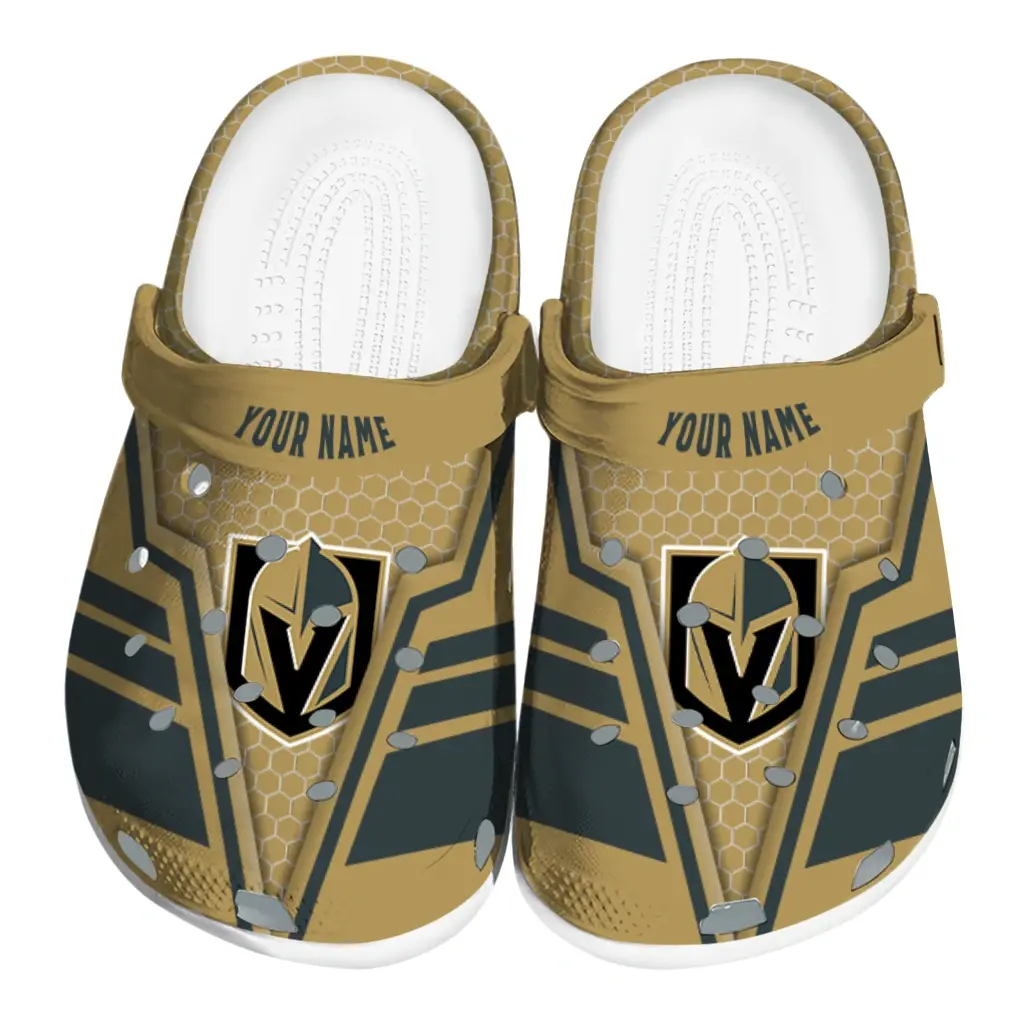 Vegas Golden Knights Clogs – Custom Hexagon Shield Tan