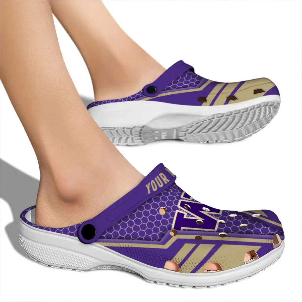 Step into easygoing comfort with the Washington Huskies Clog – Custom Hexagon Shield Purple, perfect for game day, tailgates, vacations, and everyday wear. Made from 100% EVA, these clogs offer a lightweight feel that fits seamlessly into your active lifestyle. Their design blends sporty vibes with casual flair, making them a go-to for those laid-back moments when comfort matters most.