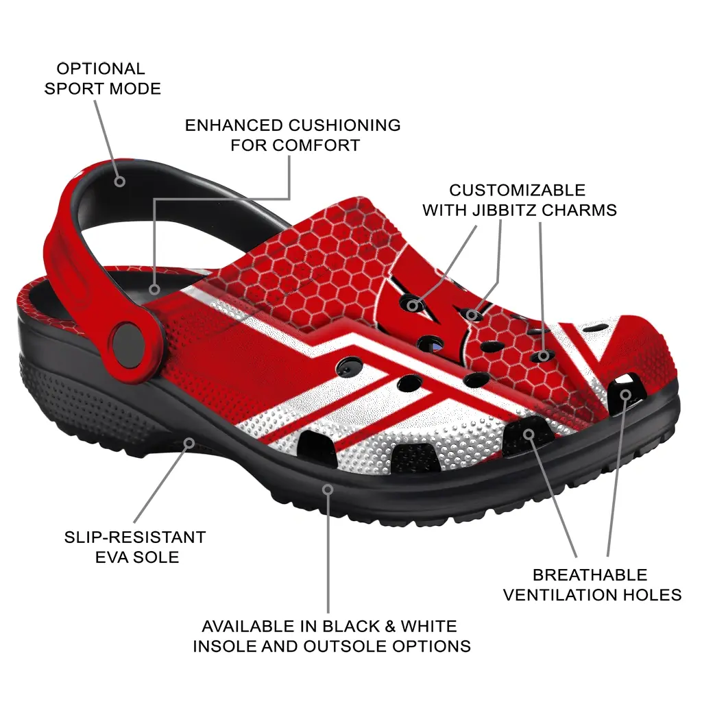 Step into comfort and style with the Wisconsin Badgers Clog – Customized Hexagon Shield Red, designed for game day, tailgates, vacations, and everyday enjoyment. Crafted from lightweight, flexible materials, these clogs offer versatility for your active lifestyle without sacrificing ease of wear. Whether you’re cheering on your team or relaxing around town, these shoes blend casual cool with practical comfort.